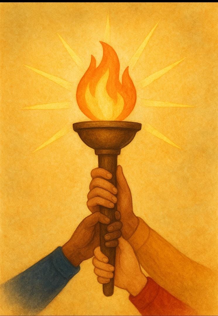 Profesor(a), la gráfica que acompaña la crónica de hoy es una antorcha encendida sostenida por varias manos profesorales, con destellos de luz que representan las cinco victorias alcanzadas. La llama no pertenece a uno solo, sino a todos; expresa renovación y vigilia colectiva. A quienes aún no han participado, les llegó la hora. Cada voto es una declaración de amor y apego por la Universidad. Cada presencia en la asamblea es una afirmación de dignidad y pertenencia. Porque cuando los profesores se unen, la historia se encauza por el camino correcto.