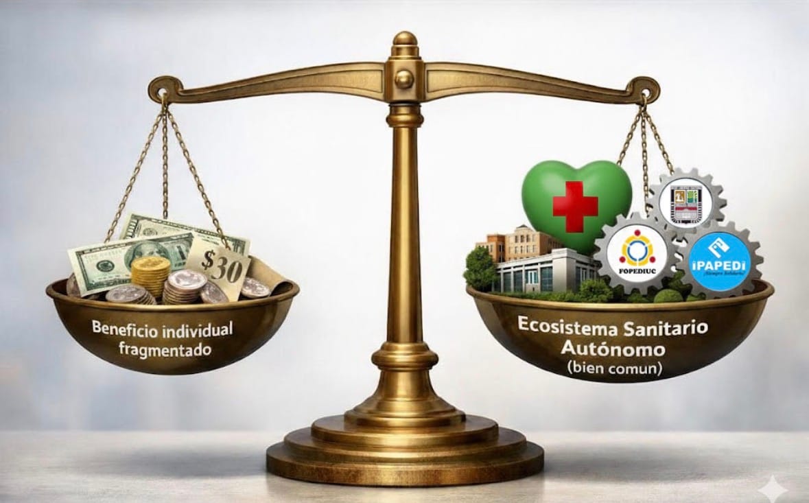 Una cartera individual mínima se agota, una infraestructura sanitaria compartida se sustenta, se fortalece y ciertamente protege. Mientras lo primero es transitorio y de consumo efímero; lo segundo es previsión social permanente con pleno sentido de apoyo mutualista.