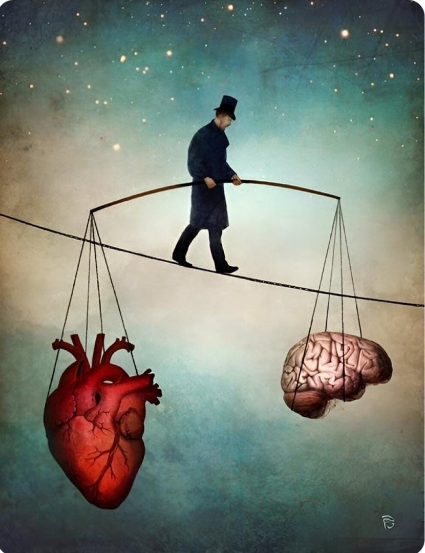 Lograr un equilibrio entre la racionalidad (cerebro) y la irracionalidad (corazón), como el sugerido en la foto de la presente crónica, es un desafío a la naturaleza humana. Lograr en política un equilibrio entre la razón y la emoción es fundamental, ya que ambos elementos están inevitablemente presentes, por ser intrínsecos a la condición humana, cuando se trata de tomar decisiones, así como cuando interactuamos en colectivo. El equilibrio, al que se aspira y espera, lato sensu, y según mi parecer, es equivalente a poner en el fiel de la balanza a las inteligencias racional y emocional. No olvidemos que la inteligencia puede ser vista también como una capacidad biológica de adaptación.