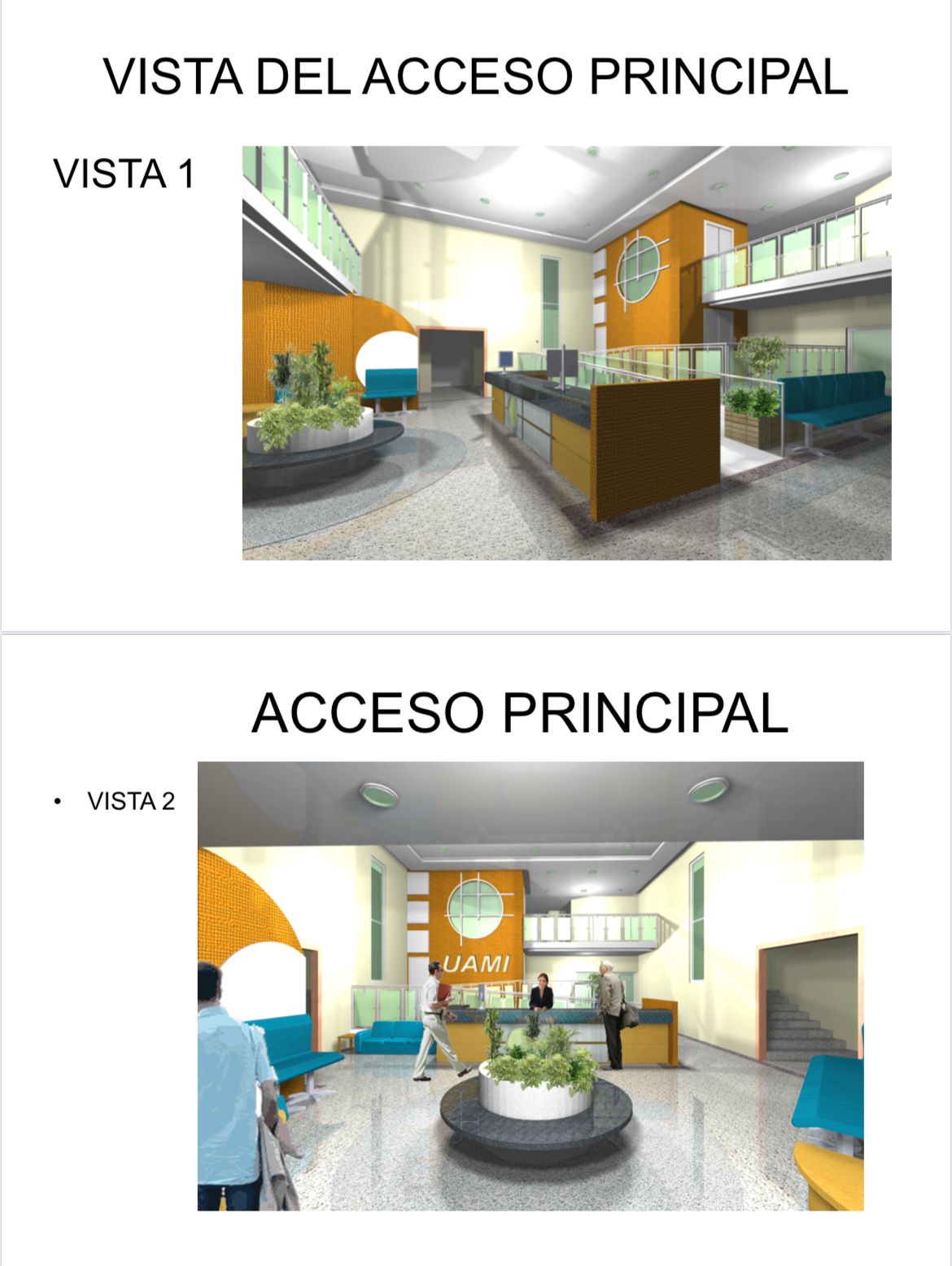 Las gráficas mostradas son las perspectivas del acceso principal del proyecto de ampliación de UAMI.