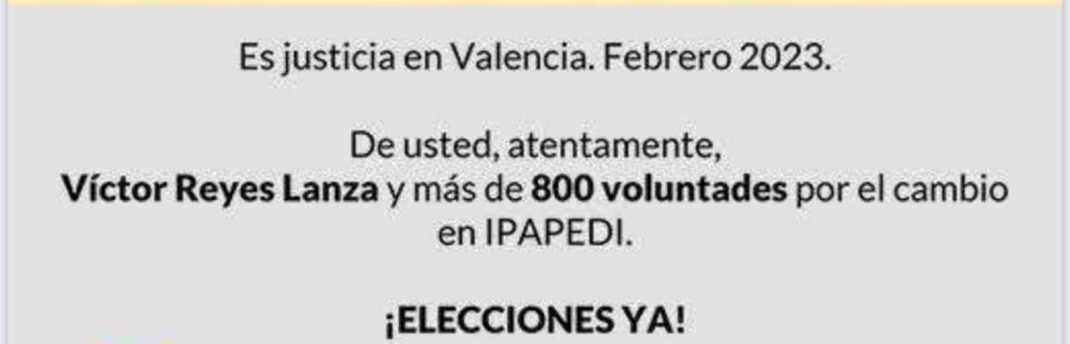La crónica de hoy domingo la dedico a copiar y pegar un artículo que hice público el 19-02-2023, y que titulara: +800 Voluntades por Cambio. En dicha entrega, de la que ya se cumplen dos (2) años y cinco (5) meses; ¡nada más y nada menos!, en la que más de ochocientas (800) manifestaciones de voluntad de profesores y profesoras, quisieron hacerle llegar al ilegítimo presidente de IPAPEDI una comunicación en la que, con el comedimiento y respeto debido, se le solicitaba la convocatoria legal de las elecciones de nuestro instituto de previsión y ahorro, habida consideración de que, para la referida fecha, se estaba a punto de cumplir un (1) año de vencido de su correspondiente período de gestión.