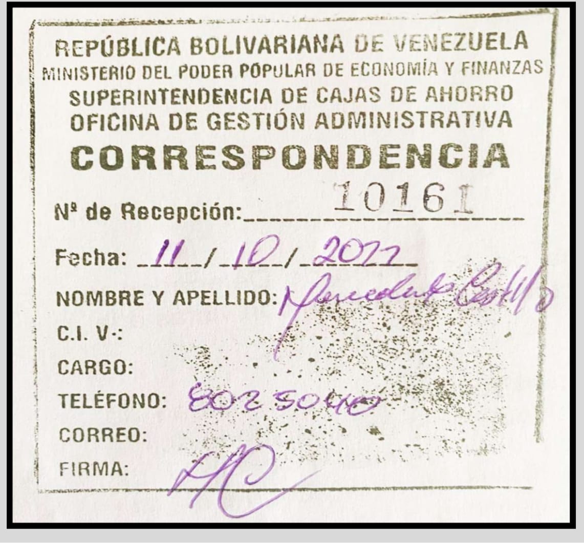 La firmeza de nuestra lucha la hemos demostrado desde que ciento ochenta y cuatro (184) PROFESORAS, en el 2022, enviaron una comunicación al Consejo de Administración del Instituto, pidiendo elecciones. Luego, por si lo anterior fuera poco, 804 PROFESORES hicieron lo propio. El 11-10-2022 fuimos a la Superintendencia de Cajas de Ahorro (Sudeca) e introdujimos nuestra demanda. Por cierto, la prueba de lo que decimos es el sello que acompaña el encabezado de la presente entrega, que da fe de la recepción de nuestra solicitud en el caraqueño órgano regulador de las cajas de ahorro de Venezuela.